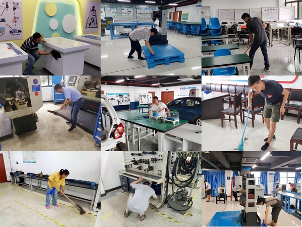 新学期,新风貌,为发挥党员同志服务意识和奉献精神,为员工提供一个干净、整洁的学习环境,2019年9月3日下午,机电工程公司党总支组织全体教师党员开展“聚合力大扫除”党员示范活动。全院38名教师党员集聚机电大楼,分散到各个实训室,开展了一次全面、彻底的大扫除。