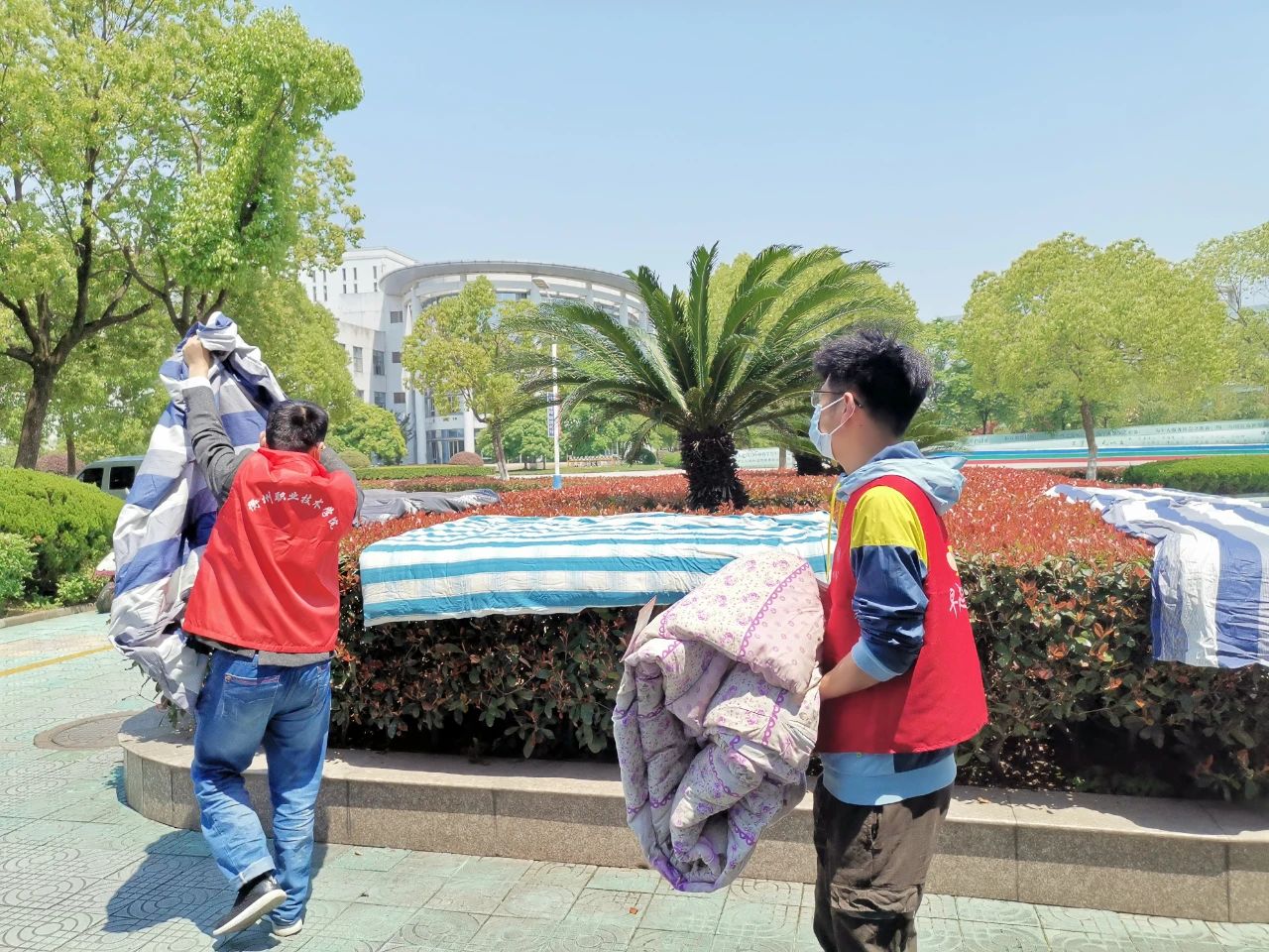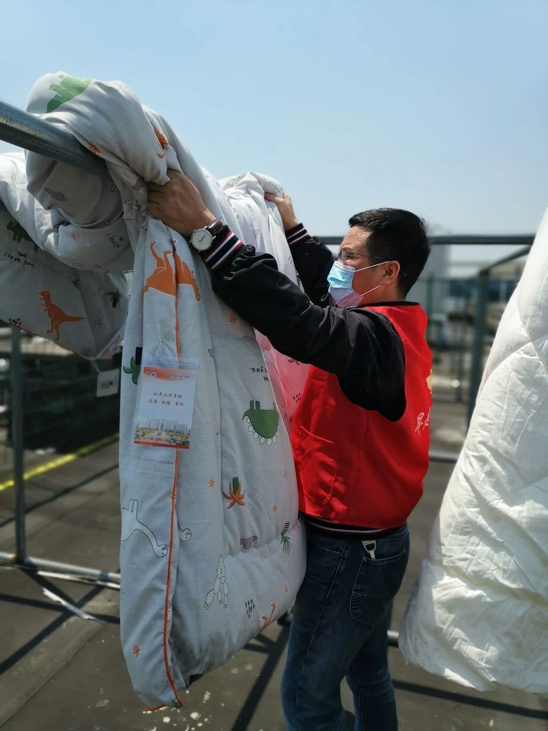 2020年伊始,新型冠状病毒感染肺炎疫情的传播,延迟了员工返校的时间。经过全国人民不畏艰苦、团结一心的共同努力,如今我国国内疫情得到有效控制,同学们也即将返回校园,开始正常有序的教学活动。根据校员工工作处“欢迎回家,‘被’感幸福--我为员工晒被子活动方案”通知,机电工程公司党总支结合四月份主题党日活动,以“3221”教职工联系寝室为载体,组织五个直属支部党员于2020年4月27日中午,在1号员工公寓,为员工晒被子,打扫寝室卫生。向员工传递一份关爱,为抗疫做出一份贡献。