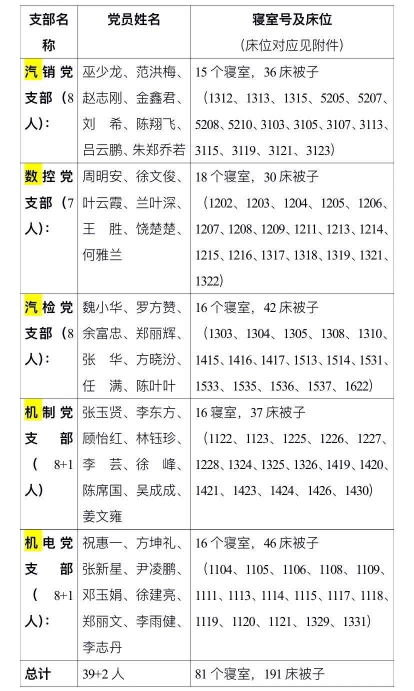活动前期,初步摸排员工晒被子需求,根据员工报名情况,形成“晒被子”员工信息表。再以支部为单位,结合“3221”联系寝室情况,将寝室和床位分配给相应支部。