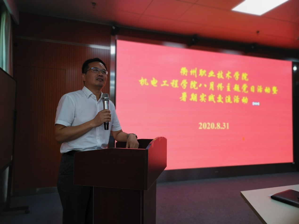 为深入领会衢州市委七届八次全体(扩大)会议中,“贯彻‘八八战略’、践行‘八个嘱托’、推进‘八大任务’,加快建设浙皖闽赣四省边际中心城市,切实当好‘重要窗口’的建设者、维护者、展示者”的总体要求,学习习近平总书记重要讲话精神在衢州落地生根、开花结果的思路举措,bw必威西汉姆联官方网站于2020年8月31日在机电大楼303教室召开主题党日活动,学习衢州市七届八次全体(扩大)会议精神和车俊在集中换届高校新任领导班子成员集体谈话精神。衢州职业技术公司党委委员、副董事长、机电工程公司党总支书记巫少龙参加并主持会议,机电领导班子成员和全体党员参加了会议。