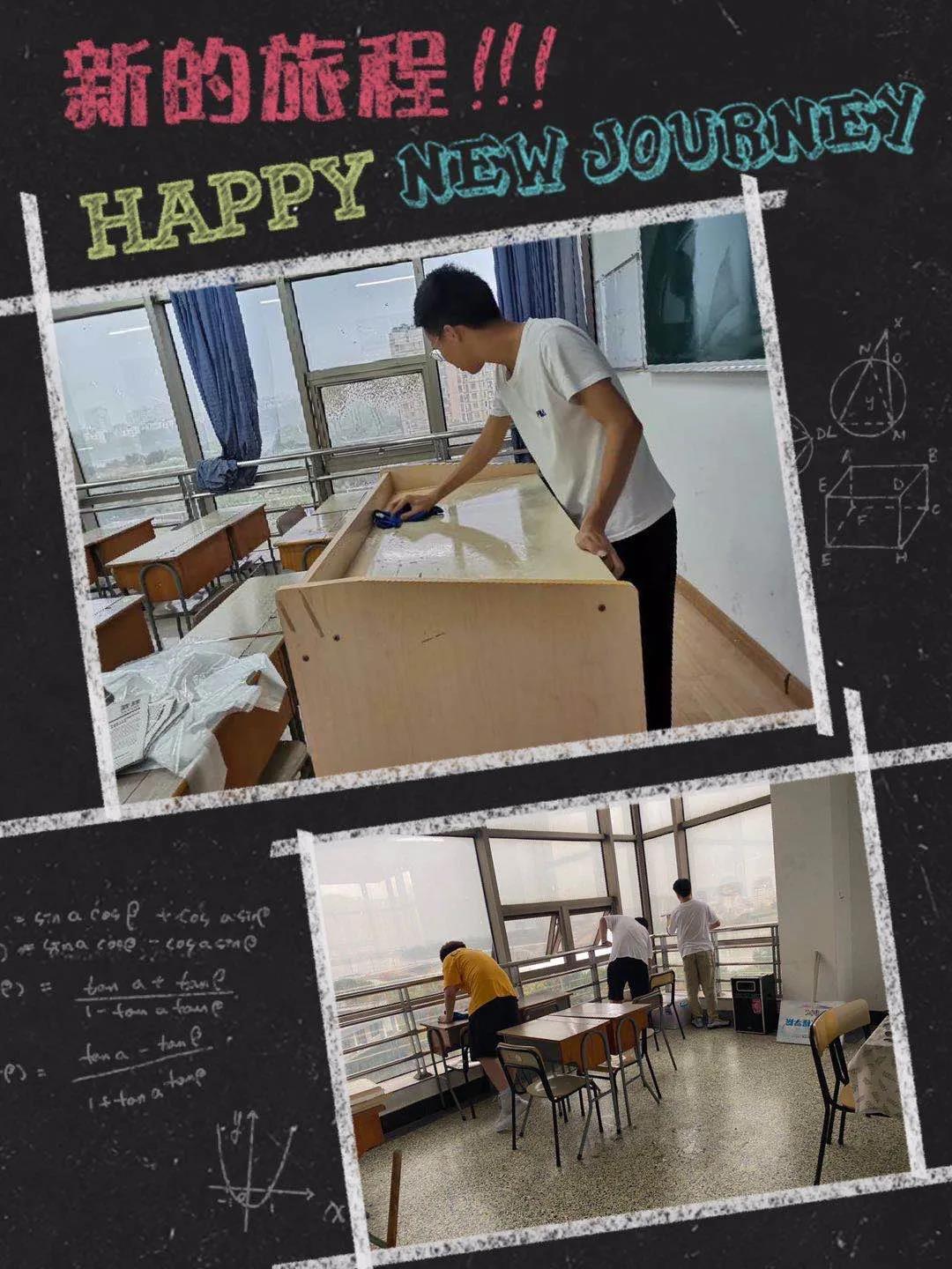 经过大家的共同努力,窗明几净,桌椅整齐,整个教室焕然一新。
