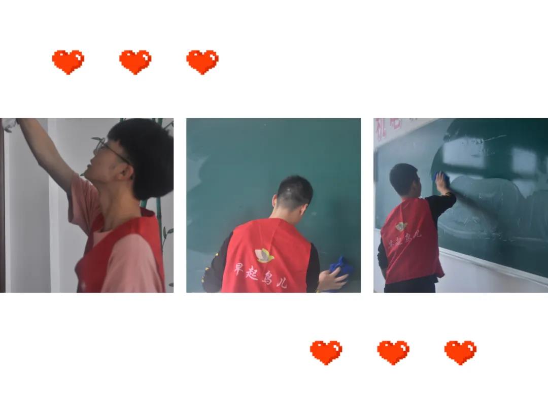 经过自主报名,共有65名入党积极分子主动要求参与到志愿服务中。志愿者们分为三个小组,由小组长带队,带着清扫工具开始了打扫了工作。同学们发扬不怕苦、不怕累的精神,认真打扫,不放过教室的任何一个卫生死角。