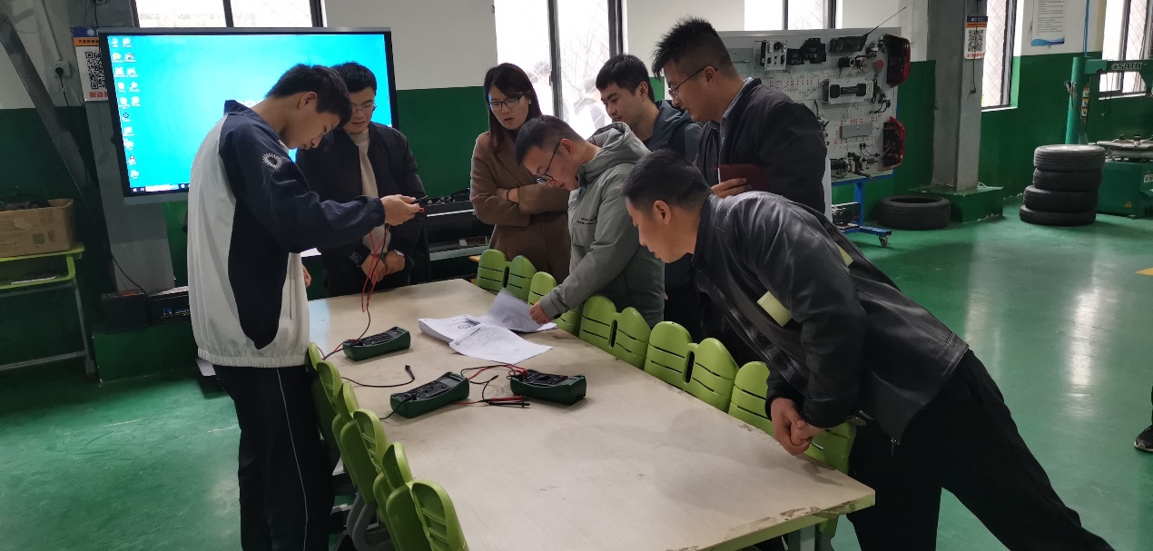 参观市工程技术公司的教学过程后,交通服务学部主任郑礼民详细介绍了新能源汽车实训室建设、课程建设、省技能大赛备赛情况,并指出学部目前在发展过程中遇到的困境,希望两校老师在教学设备、团队力量共享等方面开展进一步合作。在参观学习过程中,中高职两校老师讨论异常激烈,就未来在教学软硬件、团队力量等进一步深入合作共享达成了共识。