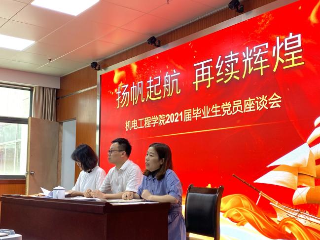随着2021届员工毕业,党员员工也即将离开母校,走向社会。6月8日中午12:30,机电工程公司党总支召开2021届毕业生党员离校座谈会。参加这次活动的有机电党总支书记朱峻同志、机电党总支副书记叶云霞同志,学工办主任李芸同志。