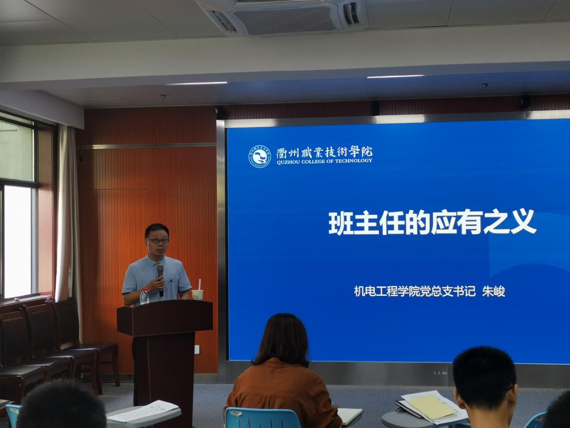 机电工程公司党总支书记朱峻以“班主任的应有之义”为主题,向全体班主任作分享。他从新形势下高校育人队伍的重要性、新时代对教师(班主任)的要求、班主任的内在价值层次、班主任的具体素质等几个方面展开,引导班主任要做员工锤炼品格的引路人、做员工学习知识的引路人、做员工创新思维的引路人、做员工奉献祖国的引路人,同时希望班主任强化责任意识、服务意识、公正意识,争做讲政治、有情怀的优秀班主任。