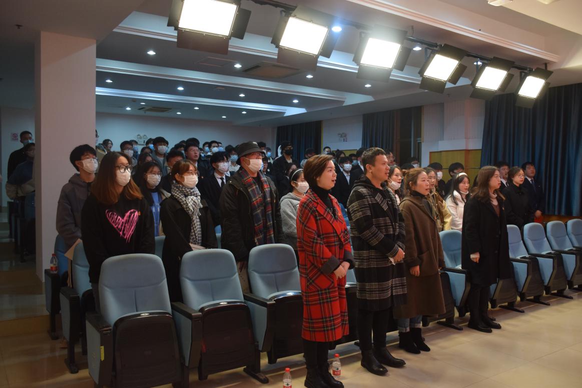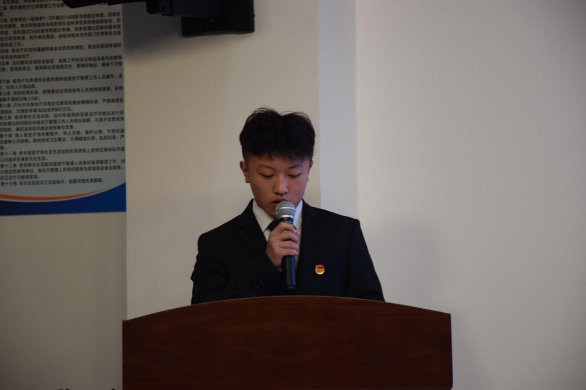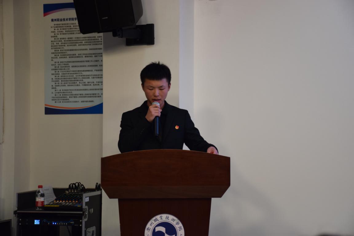 在奏唱国歌后,院十四届团委副书记倪炬男报告本次学代会筹备工作情况