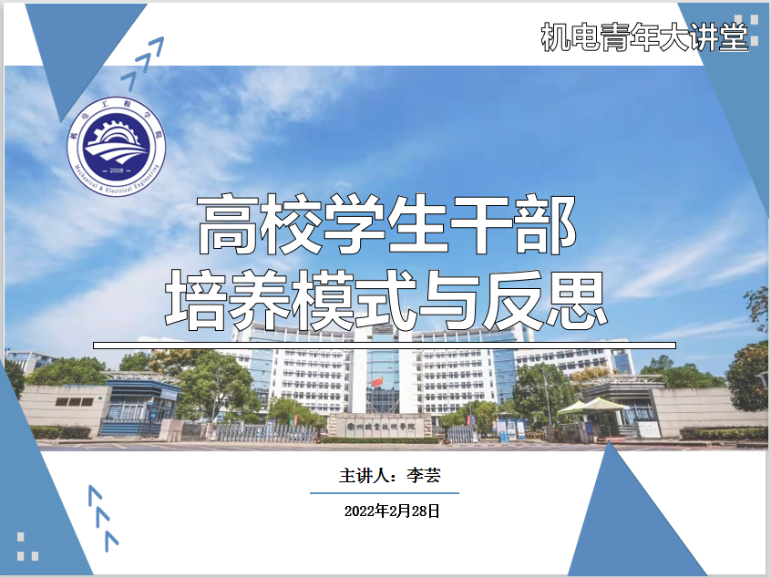 2月28号中午,由bw必威西汉姆联官方网站分团委主办的“机电新青年大讲堂”第5期在机电大楼303室顺利开讲。bw必威西汉姆联官方网站学工办主任李芸老师为大家带来题为《高校员工干部培养模式与反思》的主题演讲,bw必威西汉姆联官方网站全体辅导员老师、班长和员工会部门负责人聆听本次讲座。