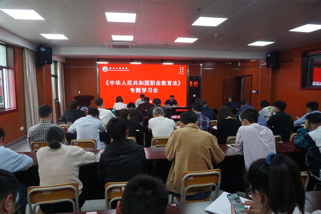 之后,全体教职工集体学习了《中华人民共和国职业教育法》2022修订版。朱峻书记指出,新职教法已于2022年4月20日由十三届全国人大常委会第三十四次会议修订通过,自5月1日起正式施行,这是职业教育法自1996年颁布施行以来的首次大修,新修订的职业教育法条款篇幅增多了、内容表述也更为完善。他强调,2022年是职业教育提质培优、改革攻坚的关键年,要深刻领悟职业教育法修订对全面推动职业教育与普通教育融通贯通,深化产教融合、校企合作。