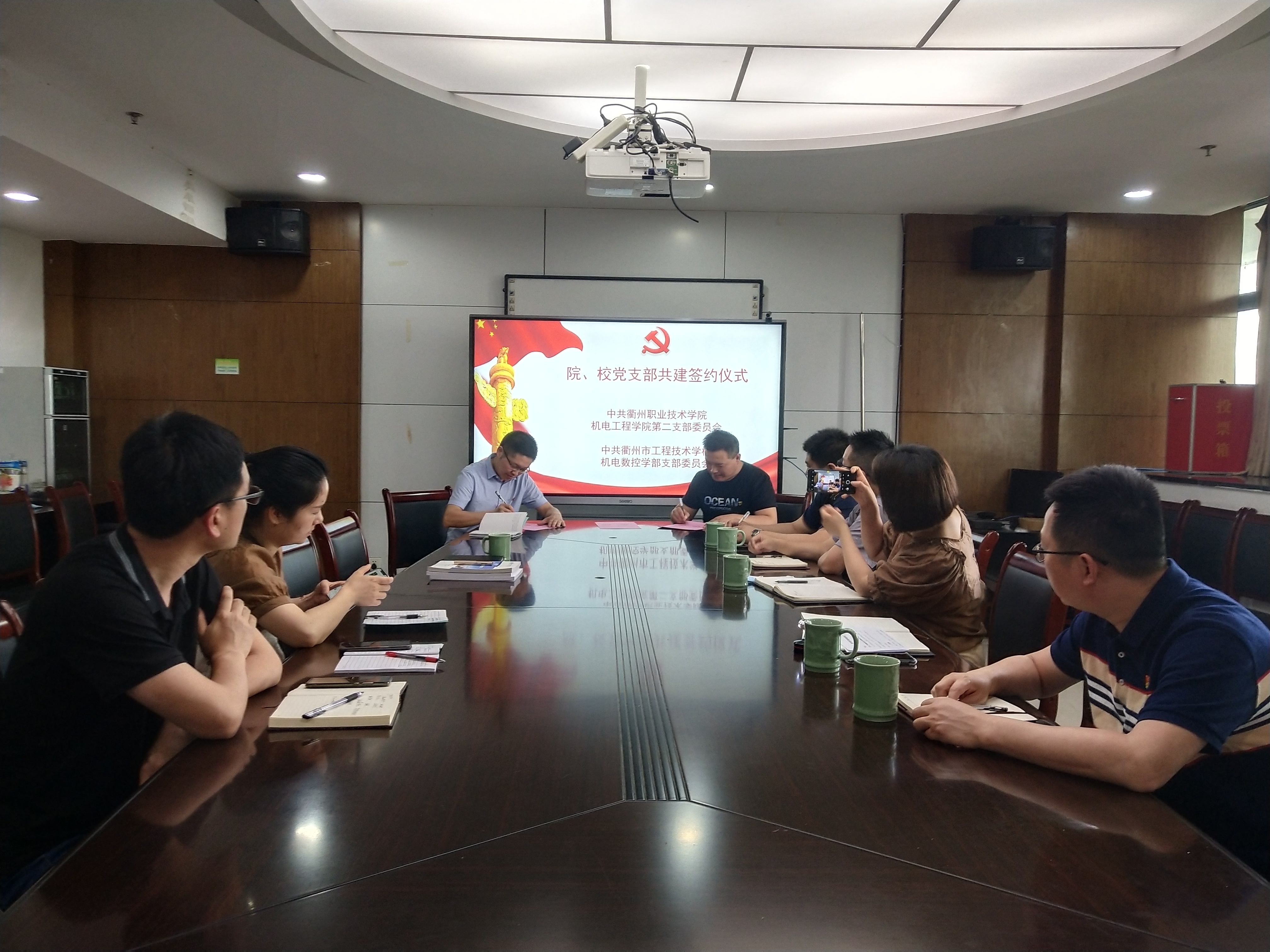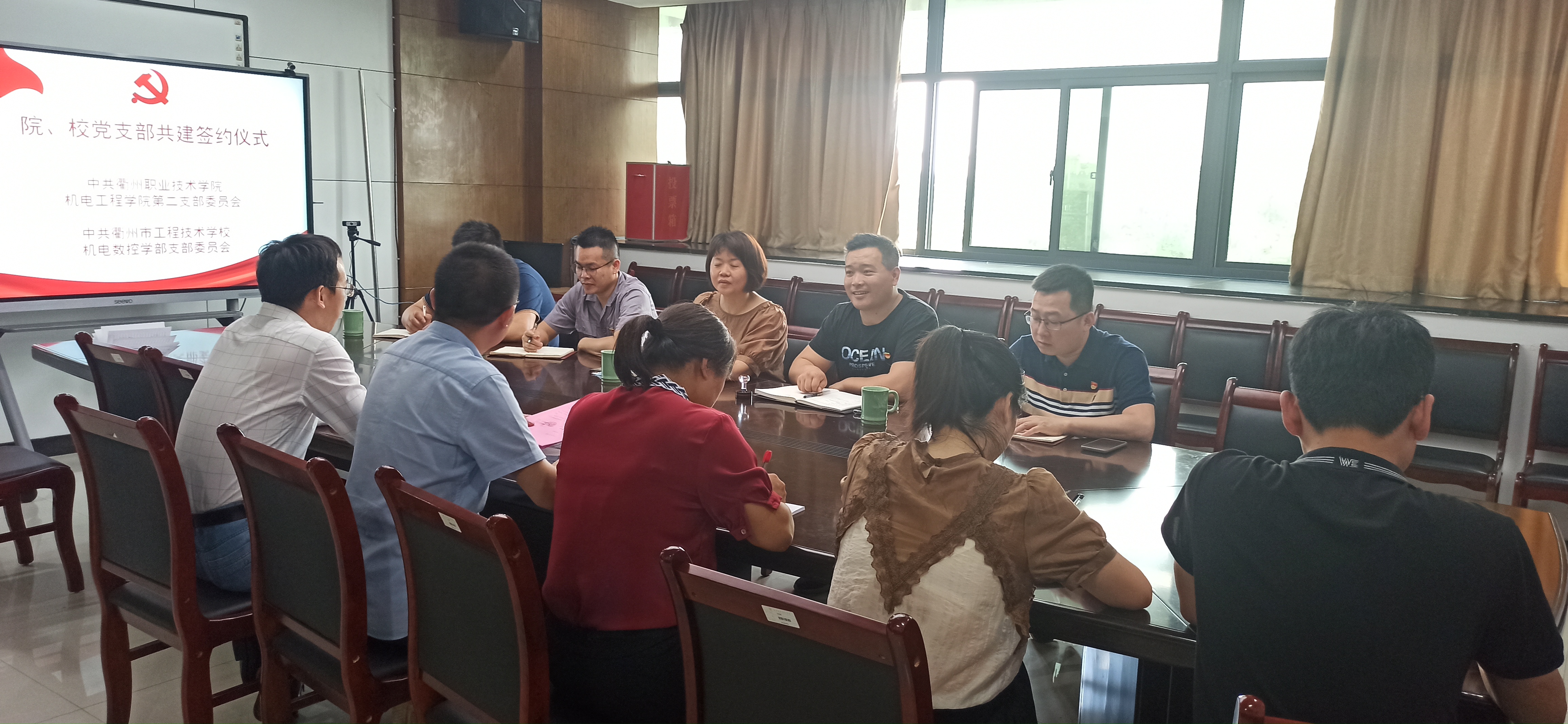 2022年6月9日下午,bw必威西汉姆联官方网站第二党支部与衢州市工程技术公司机电数控学部党支部在机电楼307会议室举行了院、公司党支部共建协议签约仪式。
