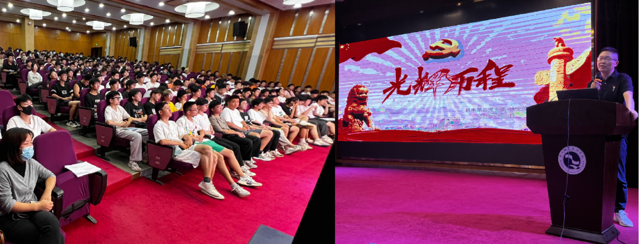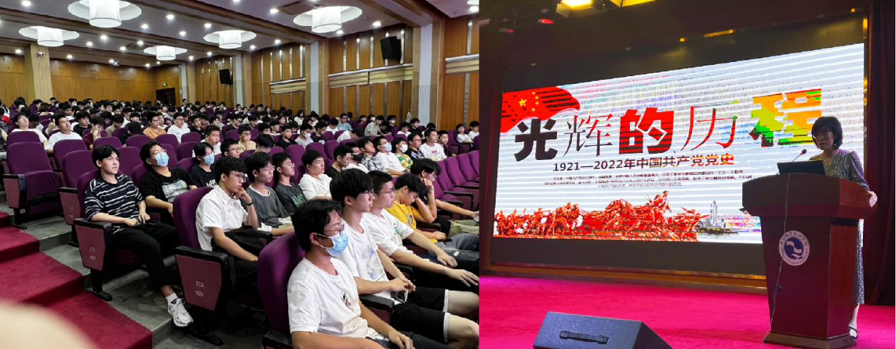 机电第三党支部书记林钰珍同志以“光辉的历程——1921年-2022年中国共产党党史”为题,从党史发展脉络及学习意义、100年艰辛与辉煌、光明的使者,幸福的源泉、锻造维护核心对党忠诚的坚定信念、学党史心得体会五个方面详细讲述了中国共产党的光辉历程。最后,林钰珍书记希望同学们以先辈们为榜样,牢记党的理想信念,在传承初心使命上有行动,以史为鉴、开拓进取,争做新时代合格的社会主义建设者和接班人。