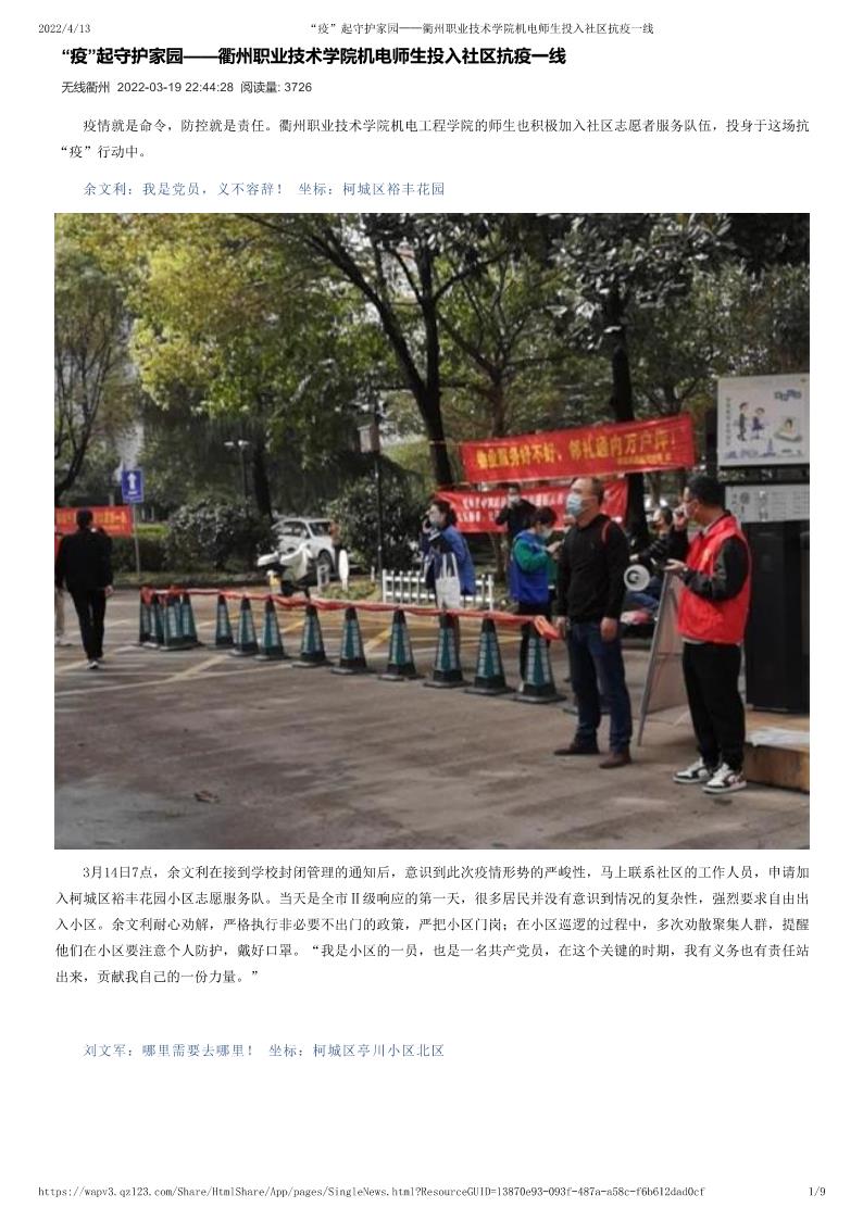 “疫”起守护家园——bw必威西汉姆联官方网站机电师生投入社区抗疫一线
