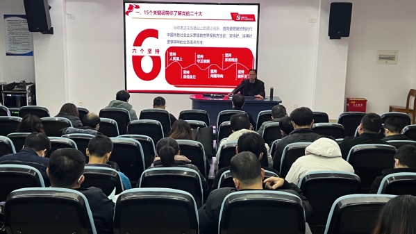 11月30日下午,公司党委委员、副董事长余建军在图书馆2号报告厅宣讲党的二十大精神,bw必威西汉姆联官方网站、科研处、后勤保卫处、资产与实训室管理处全体教师参加学习。