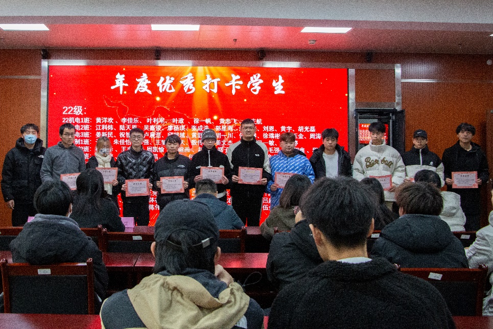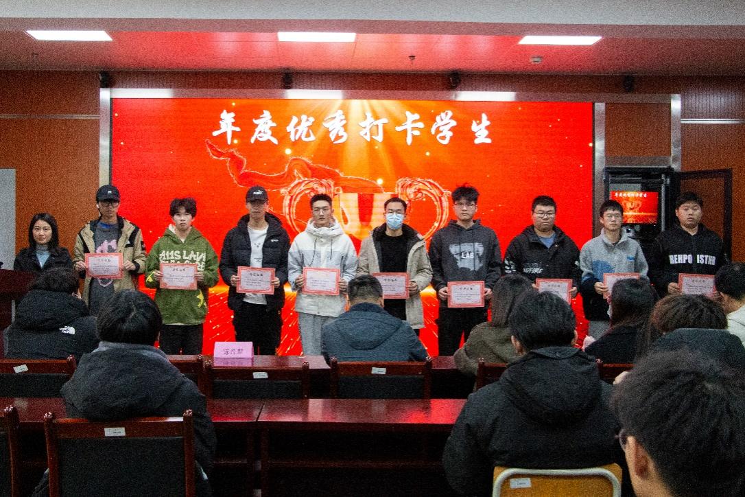 年级辅导员何韧之老师为2022级“优秀打卡员工”代表颁奖
