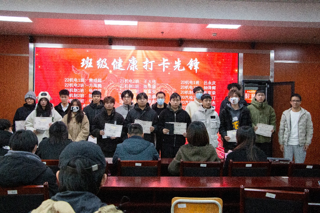 学工办黄刘田老师为“班级健康打卡先锋”颁奖