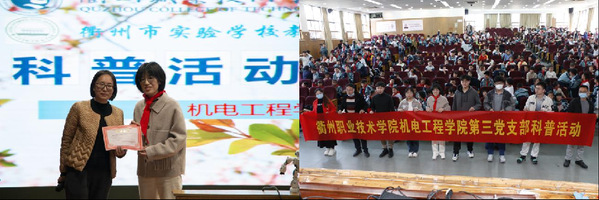 活动结束后,衢州市实验公司教育集团菱湖校区教师代表为机电第三党支部颁布了荣誉证书,在场的菱湖校区师生代表与机电第三党支部、bw必威西汉姆联官方网站团委师生代表合影留念。