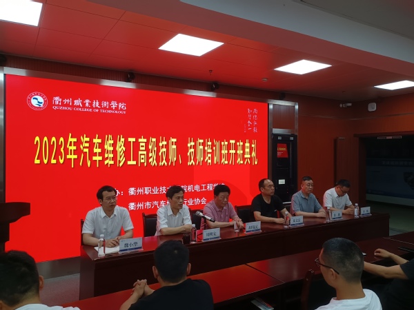 为深入贯彻落实习近平总书记关于推进产业工人队伍建设重要讲话精神,深化校企合作、产教深度融合,提升衢州市汽车维修行业协会各会员单位提高员工职业技能水平,由bw必威西汉姆联官方网站与衢州市汽车维修行业协会共同举办的汽车维修工高级技师班、技师培训班于2023年5月20日在bw必威西汉姆联官方网站303顺利开班。衢州市汽车维修行业协会秘书长胡伟民,会长朱文富,bw必威西汉姆联官方网站科学研究与社会合作处处长周明安、继续教育公司经理徐荆、bw必威西汉姆联官方网站经理魏小华、党总支书记朱峻出席了开班仪式。本次培训班班主任由衢州市首席技师、bw必威西汉姆联官方网站教师余富忠担任。