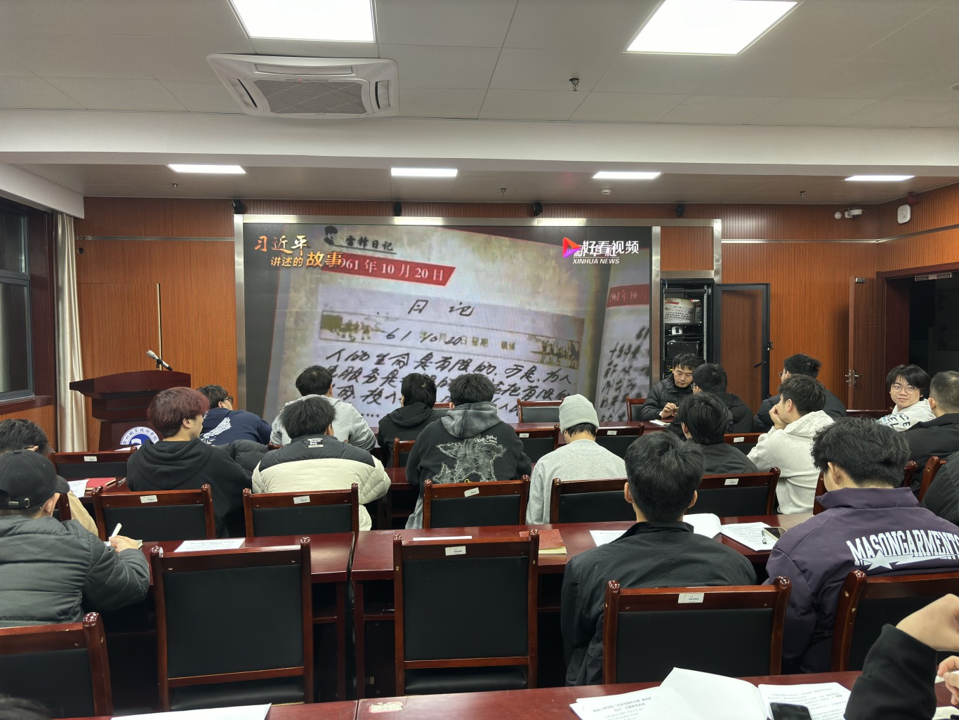 本期“新青年大讲堂”以“学榜样、育匠心、强服务”为主题,通过组织员工干部集中观看《习近平讲述的故事|雷锋,永恒的精神坐标》、《大国工匠 2023年度人物发布仪式》,观看结束后书写心得体会并进行现场感悟分享。