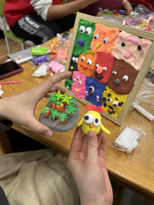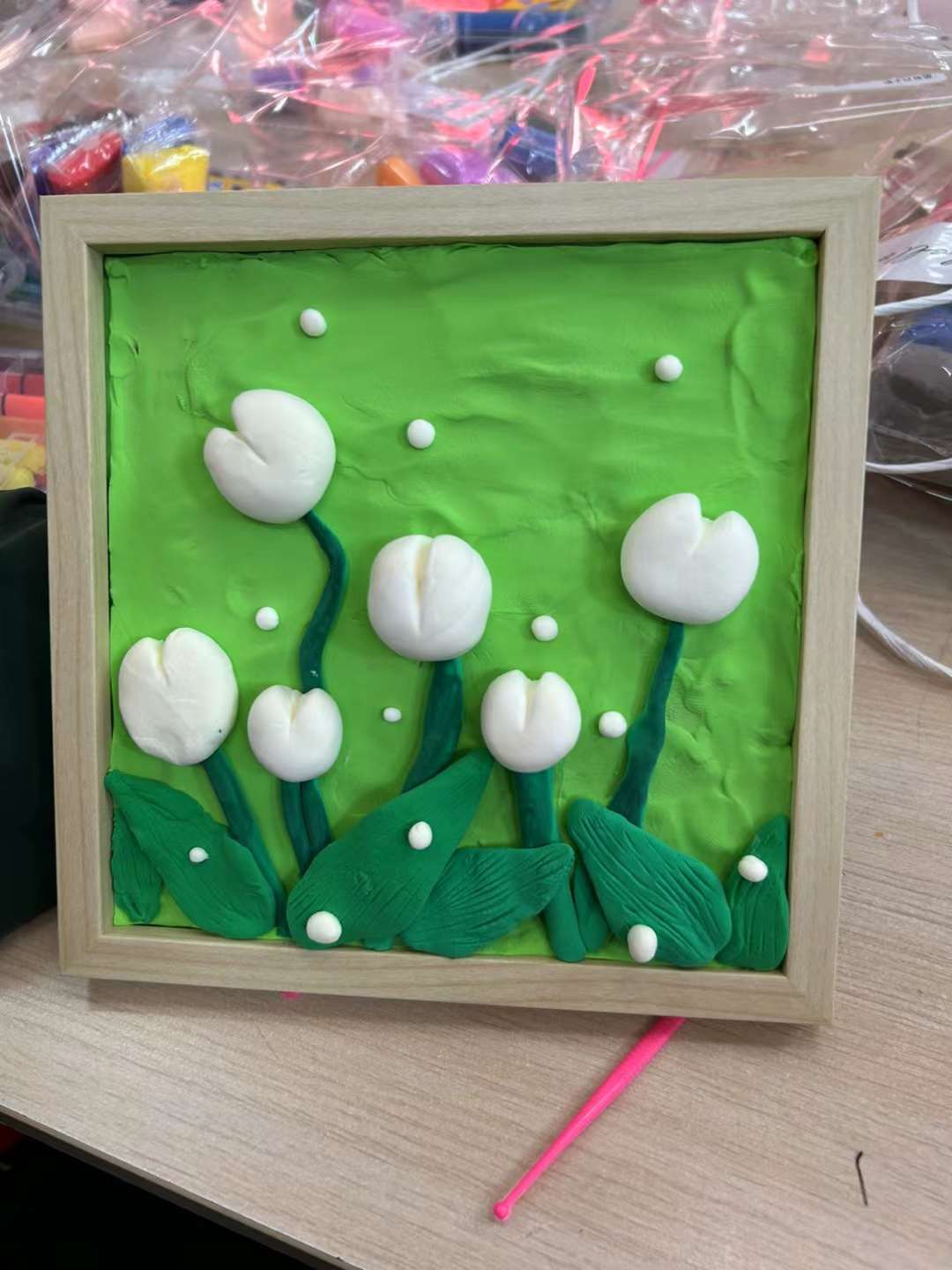 在志愿者们的帮助下,小朋友们熟悉了过程,制作出了属于自己的粘土画。每一张粘土画都是独一无二的,有卡通人物、有小动物、有风景画。创作结束后,小朋友们互相展示自己的作品,分享快乐,在过程中结交新朋友,提升动手能力,体验不同的感受。