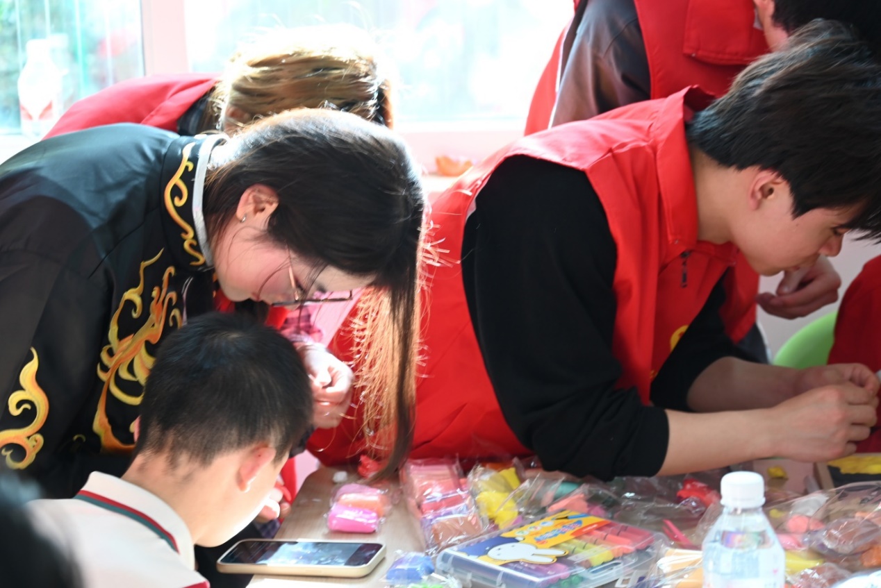 接着,开展“粘土画DIY”活动。志愿者分发材料,并向小朋友们讲解粘土画的制作过程,并按步骤细心教学。