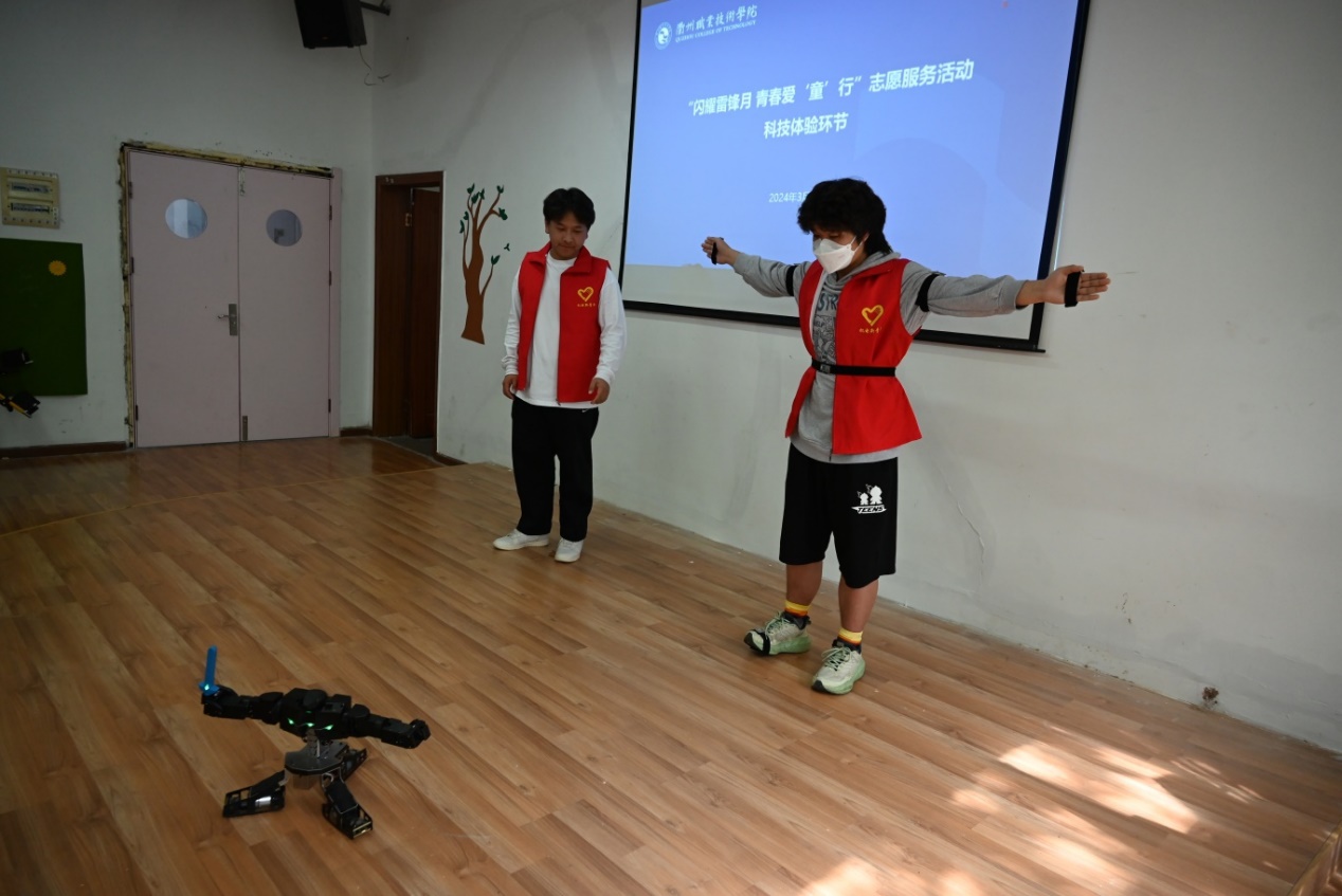 工业机器人专业员工们为孩子们展示自主研发的机器人,并进行机器人格斗表演,激发孩子们对科技的兴趣和好奇心。