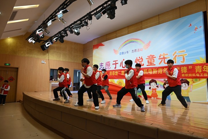 武术表演《舞动青春》向福利院孩子们展示了机电学子朝气蓬勃、阳光自信、奋发向上的精神风貌。