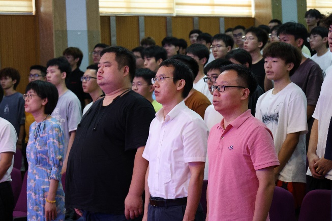 开场,全体起立奏唱国歌,用声声坚定,句句铿锵诉说昂扬,激励每一位机电学子。