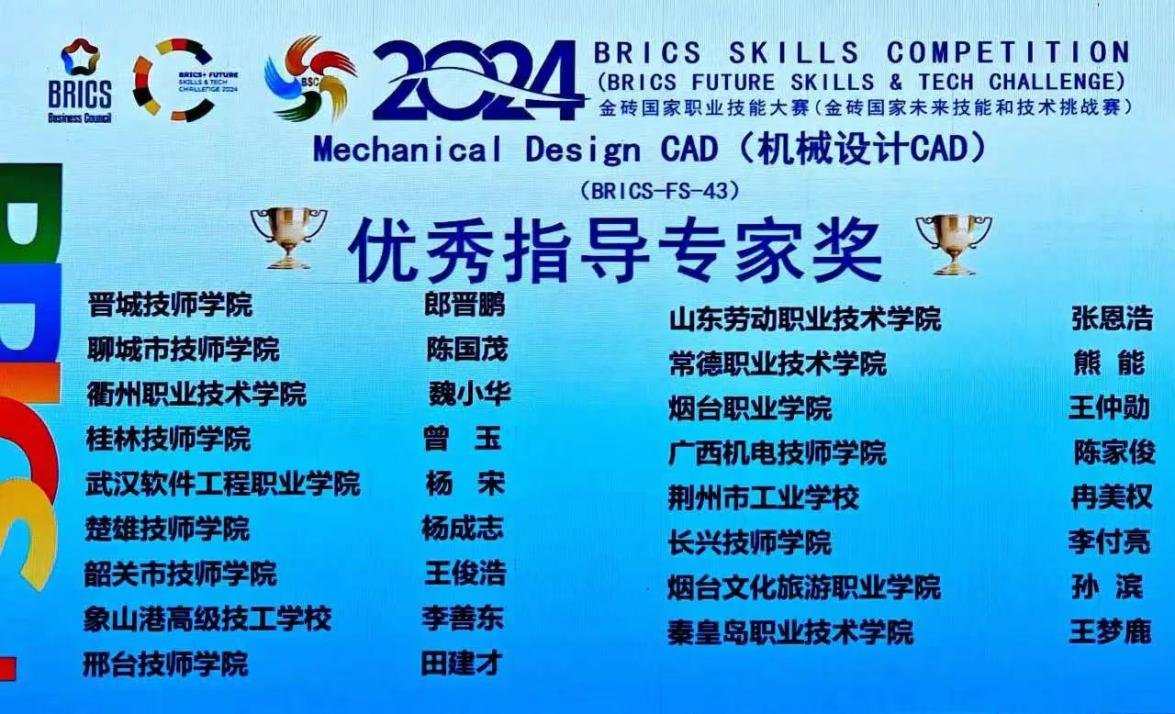 近日,2024金砖国家职业技能大赛(金砖国家未来技能和技术挑战赛)机械设计CAD赛项国际总决赛圆满落幕。bw必威西汉姆联官方网站传来喜讯,邵思程老师凭借出色表现荣获该赛项一等奖,指导教师被授予优秀指导专家称号。