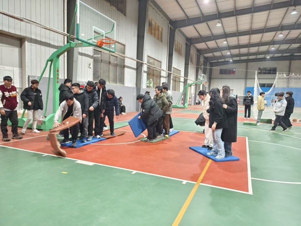 折返跑上篮更是技术与速度的考验。参与者们如离弦之箭般飞驰而出,在折返点迅速转身,向着篮筐全力冲刺上篮。用脚猜拳环节回顾童年的方式让大家忍俊不禁。同学们围坐一圈,以脚代手,出拳、比布、亮剪刀,欢闹声此起彼伏。