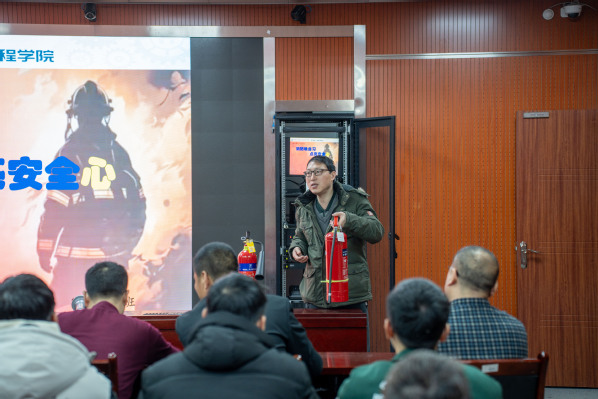 活动始伊,周建锋老师详细讲解了消防安全知识。周老师介绍了干粉和二氧化碳灭火器的使用方法,同时,周老师强调校园火警电话8060119及疏散逃生要点,提醒员工务必经安全出口疏散,依据疏散标志有序撤离。