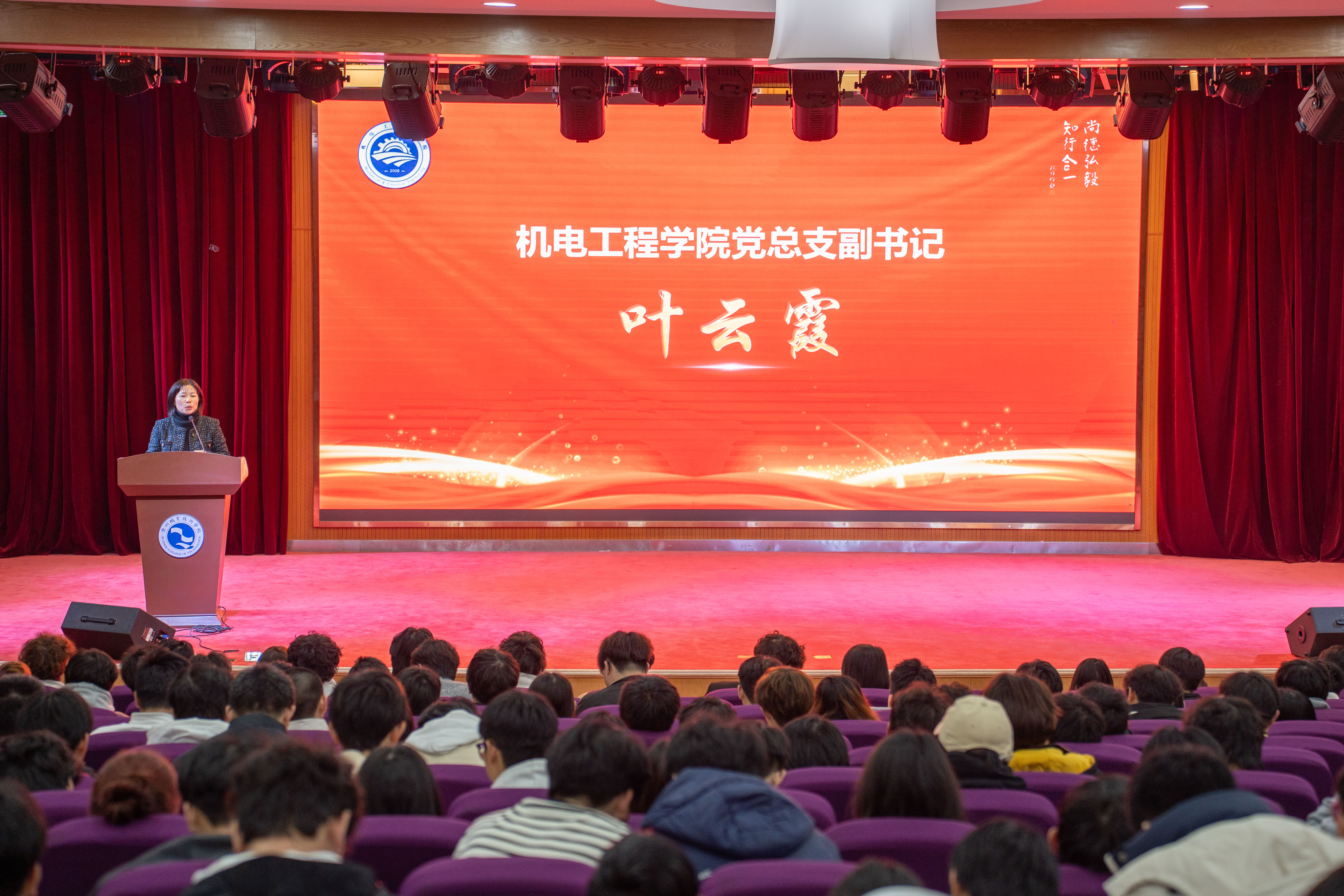 分团委书记何韧之介绍了2024-2025学年第二学期团学工作重点。内容聚焦于“学巨匠精神,铸机电匠心,怀报国之心”主题教育活动,鼓励机电新青年踊跃参与此次主题教育活动,在巨匠精神的熏陶下,体悟专注执着的机电匠心,将报国之志深植心间。