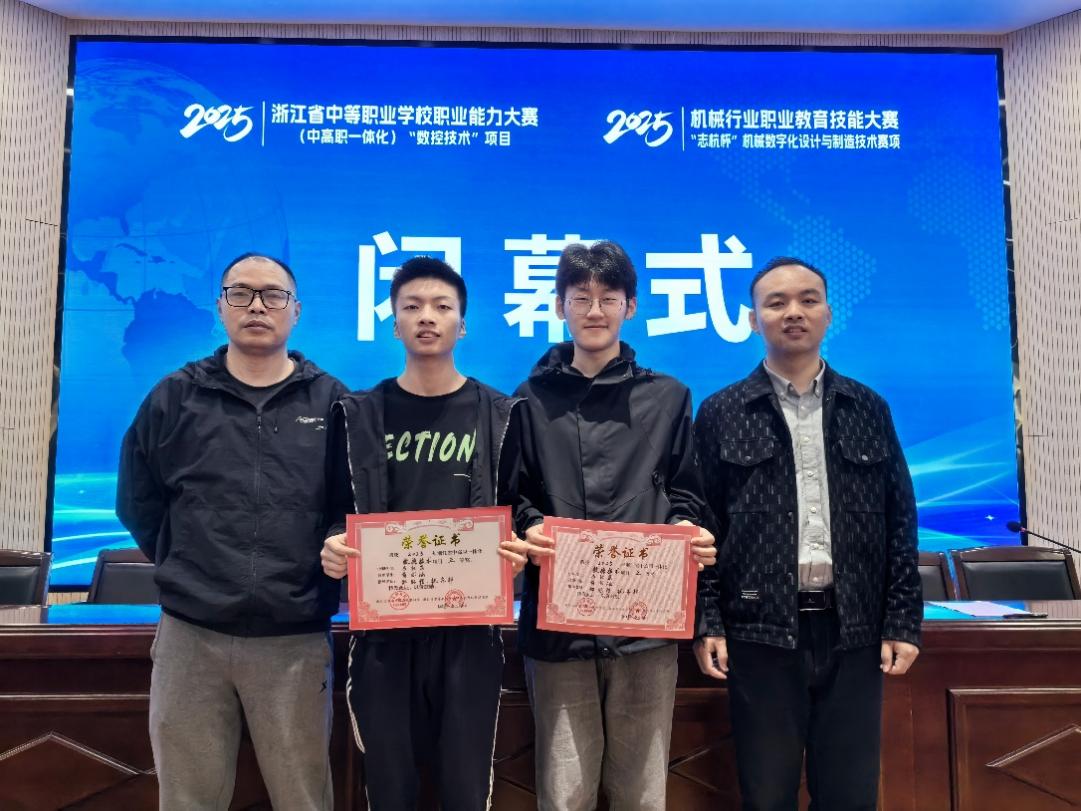 近日,2025年浙江省中高职一体化“数控技术”项目比赛在永康市职业技术公司顺利举行,我徐欣彬、蒋亦涵、刘华辉三位同学分别与衢州第二中等专业公司、衢州中等专业公司、衢州市工程技术公司中职员工组成的三支联合参赛团队均获大赛三等奖。