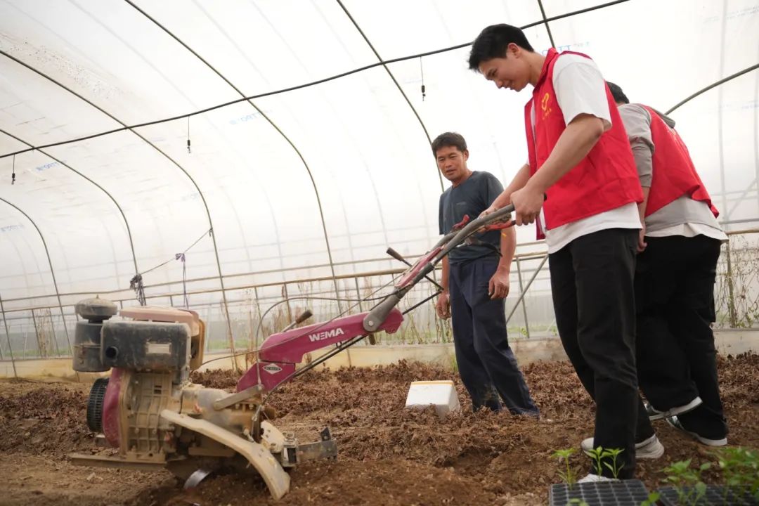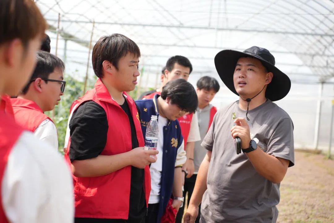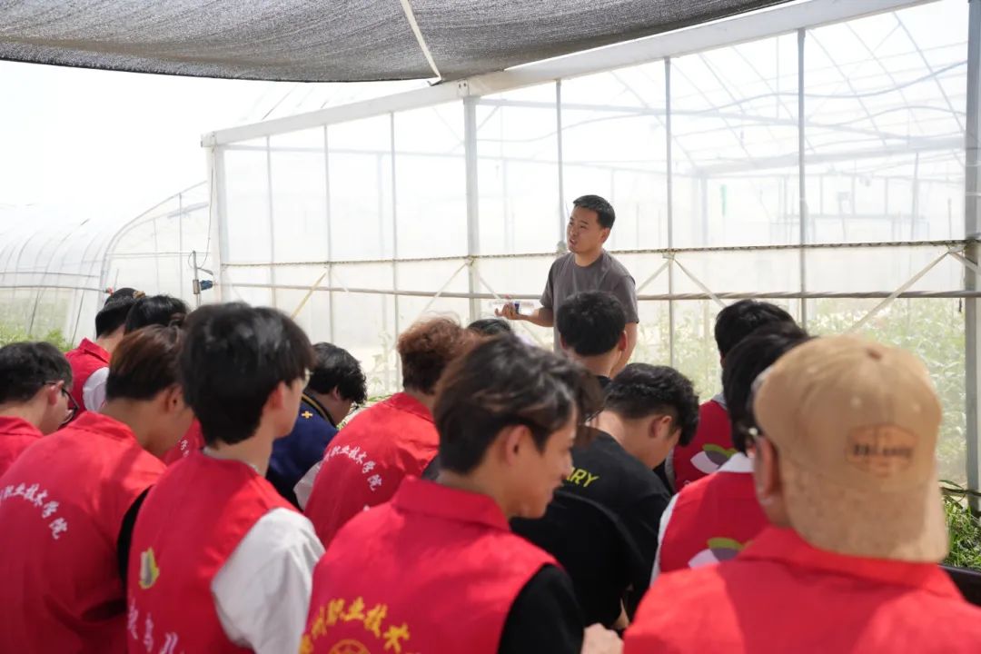 分享结束后,同学们积极提问,现场气氛热烈,拉进了彼此的距离。随后,学长带领大家参观果园并进行劳务体验。其间,同学们积极投入活动环节,在果园工作人员的帮助下,同学们播种、犁地。尽管艳阳高照,但依旧打消不了同学们的积极性。