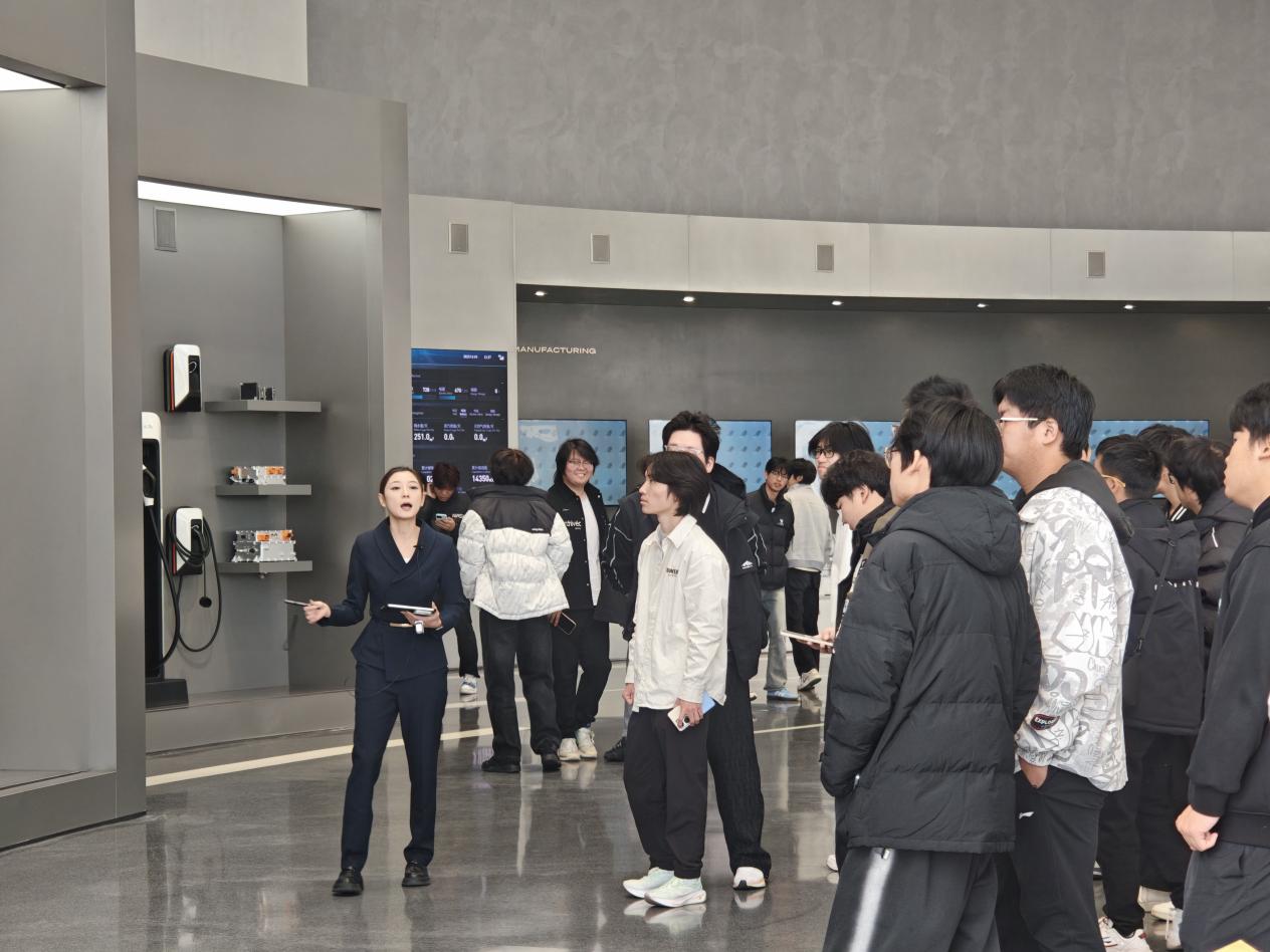衢州极电新能源科技有限公司则向同学们展现了新能源产业的蓬勃生机。到达企业后,同学们依次参观了展厅、电池工厂、电驱工厂及宿舍样板区,并听取了企业宣讲。通过全景式参观,大家对新能源动力电池的安全性、续航能力提升技术有了直观认知。企业人力资源部门还特别组织了专题宣讲与青年员工访谈环节,邀请一线技术岗位的新进员工分享他们从校园到职场的转变经历,介绍企业对新人的培养机制与职业发展路径。真实的成长故事与贴近员工实际的建议,引发了同学们的浓厚兴趣,也让大家对未来职业规划有了更加清晰的认识。