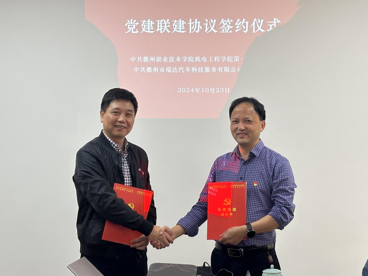 bw必威西汉姆联官方网站第一党支部书记余富忠与衢州市瑞达汽车科技服务有限公司党支部书记徐小勇签订了党建联建协议书。