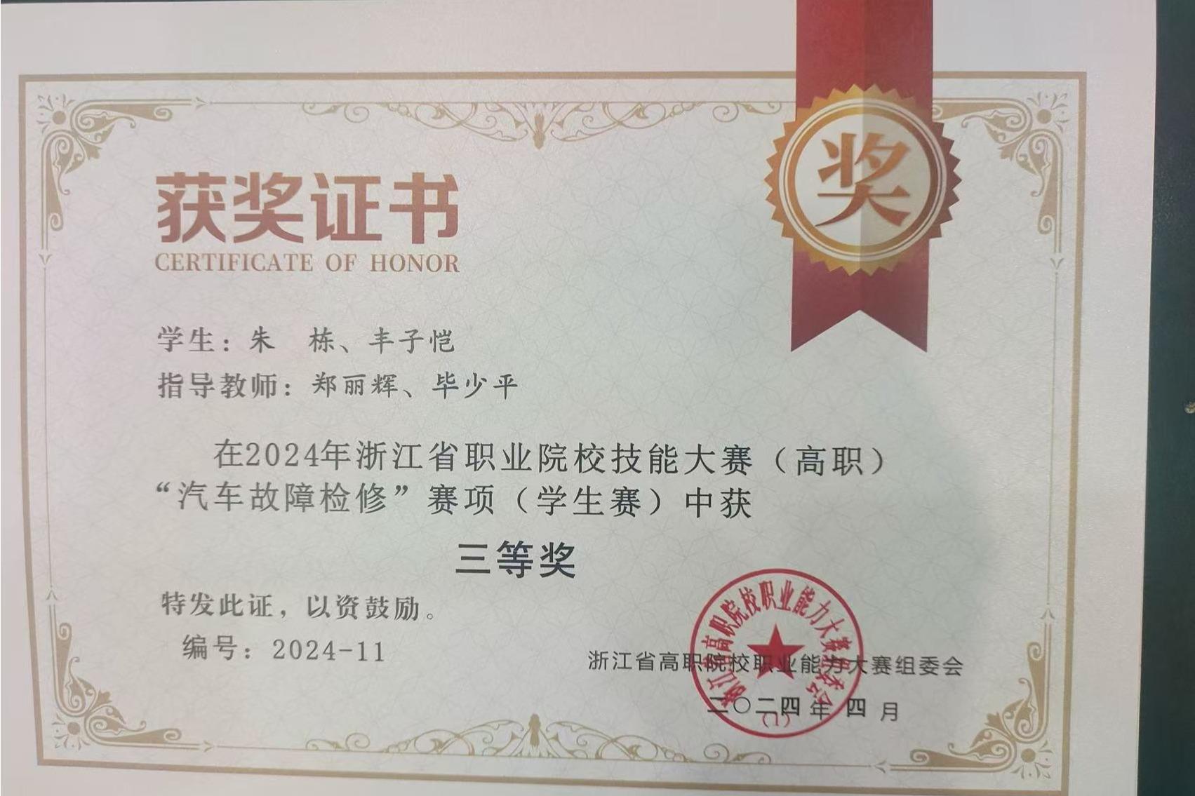 郑丽辉、毕少平指导员工获2024浙江省职业院校技能大赛”汽车故障诊断“赛项三等奖