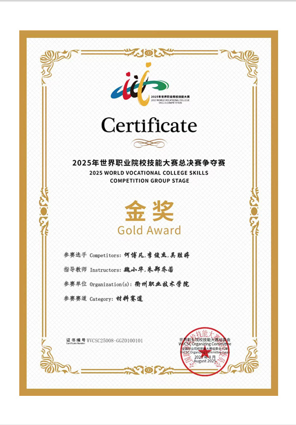 魏小华、朱郑乔若指导员工获2025世界职业院校技能大赛总决赛争夺赛-材料赛道金奖