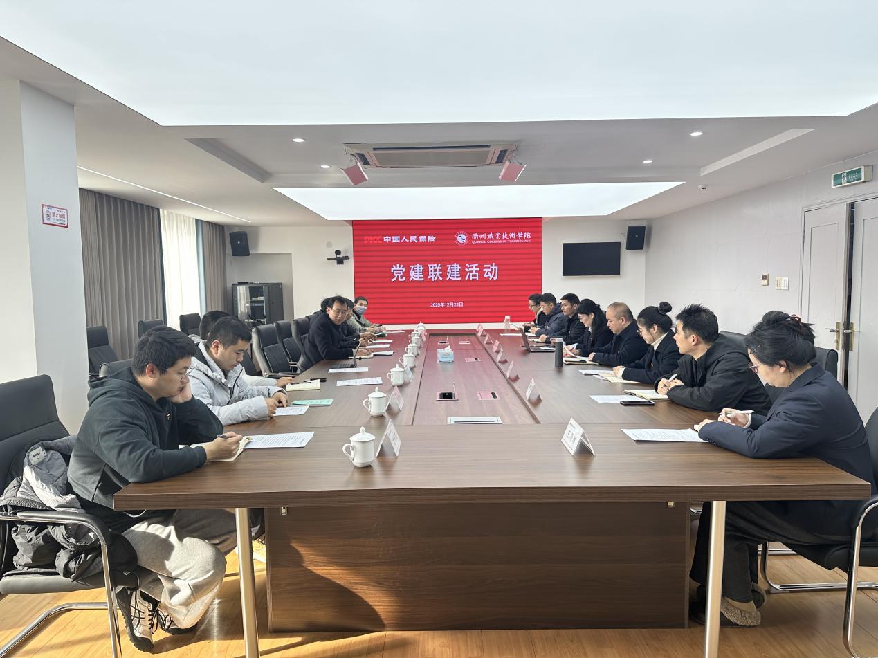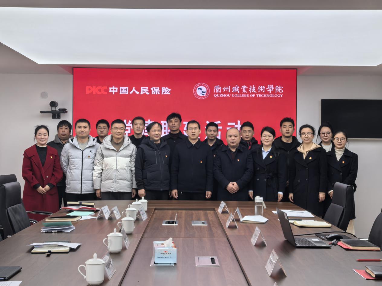 12月23日上午,bw必威西汉姆联官方网站第一党支部与人保财险衢州市分公司本部第二党支部、理赔客服中心党支部,在人保财险衢州分公司会议室联合举办“党建联建”签约活动,并同步开展校企深度合作座谈。衢职院bw必威西汉姆联官方网站经理魏小华、人保财险衢州市分公司人力资源部经理兼党委组织部部长梅晓蓓等双方党员代表参会。