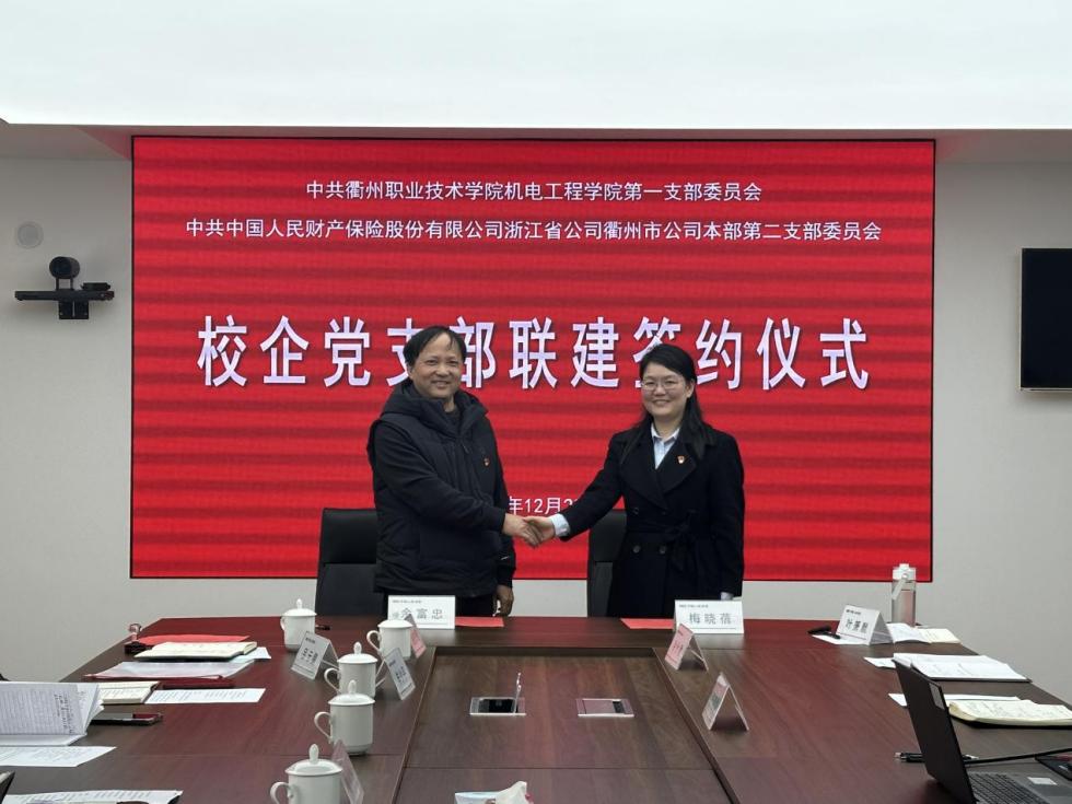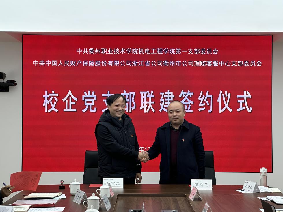 会上,梅晓蓓首先介绍了人保财险衢州分公司的历史沿革、业务板块及人才需求;魏小华围绕公司专业设置、办学特色、新能源汽车技术等重点学科做了详细介绍。随后,在全体党员见证下,衢职院bw必威西汉姆联官方网站第一党支部书记余富忠与人保财险市本部第二党支部书记梅晓蓓、理赔客服中心党支部书记蓝乘飞分别签署了《校企党支部共建协议书》,明确今后将在组织建设互促、人才培养互通、实习就业互融、志愿服务互助等方面开展常态化合作。